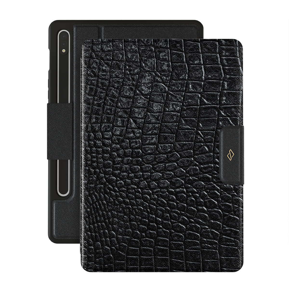 Our Reaper's Touch Samsung Galaxy Tab S8/S7 folio case cover features a classic snakeskin design in dark black. The dangerous animal print will add confidence and a touch of luxury to your style while transforming your Galaxy Tab into a fashion accessory.