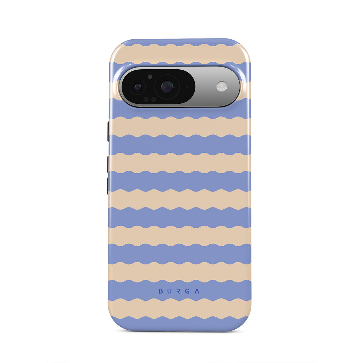Dive into the cool, refreshing style of our Splash design–a dynamic Google Pixel 9 phone case featuring playful, wavy stripes of serene ocean blue and soft sandy beige. Perfect for those who love to make a splash with their accessories.