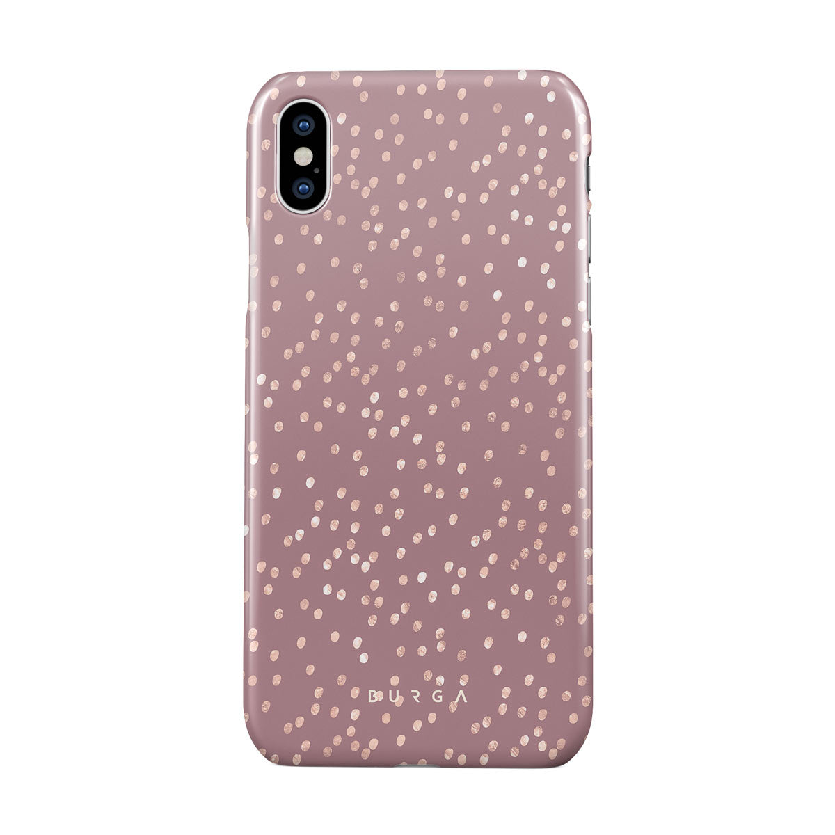 Trendy mauve color as a background for the gold-colored spots creates true beauty. Make your iPhone XS Max stand out with our protective and pretty Hot Cocoa phone case. The spotted pattern adds a touch of luxury to your phone, while the case's hard-shell nature offers much-needed protection.