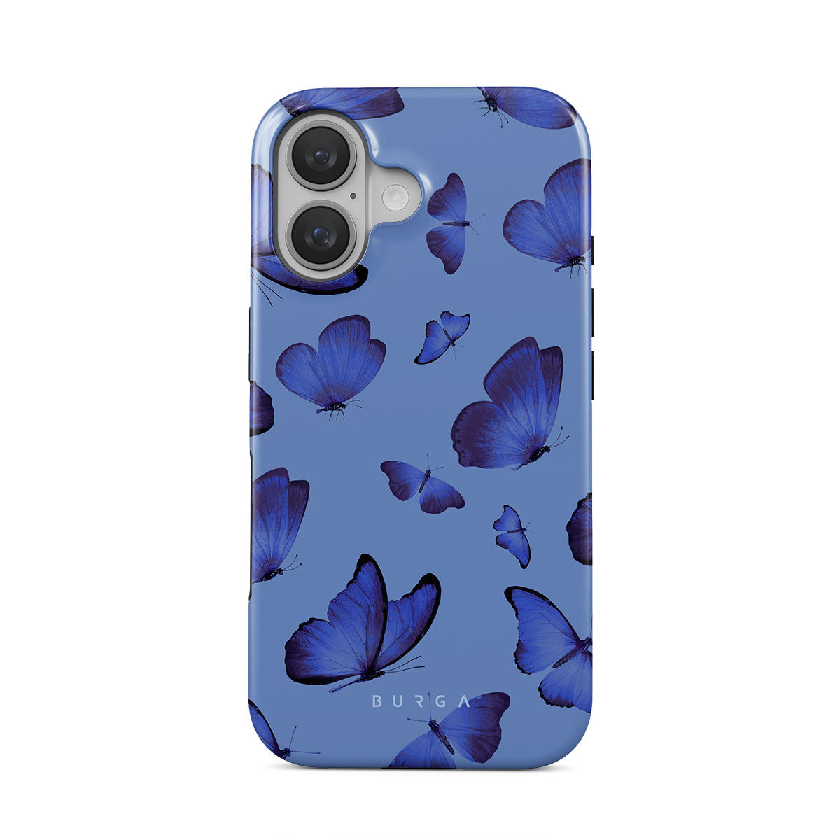 Bright blue butterflies dance across a sky-blue expanse, a visual representation of freedom and transformation. Our Spring Court iPhone 16 Plus phone case design symbolizes the soul's eternal dance with change, each flutter a step towards becoming who we are meant to be.