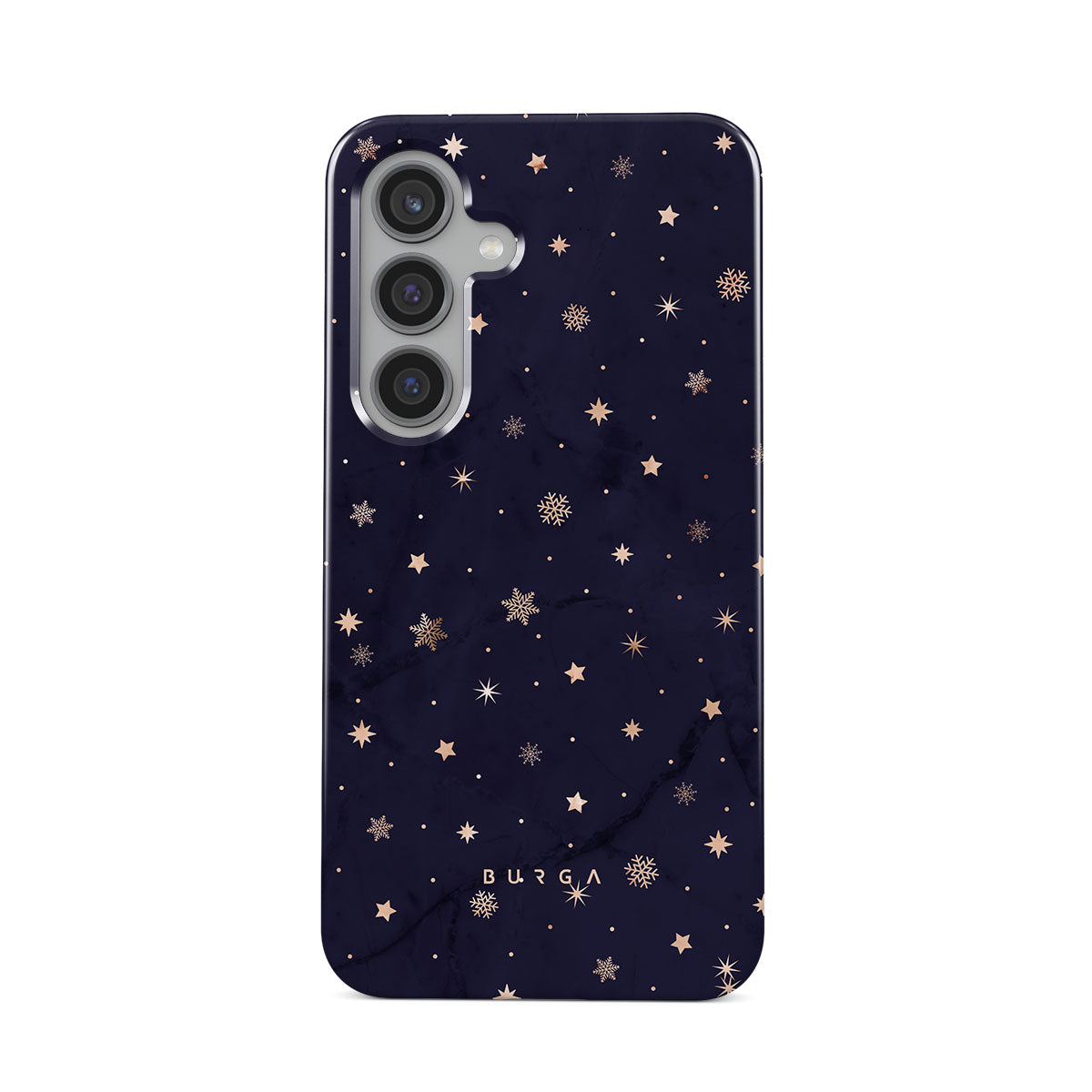 With a dreamy combination of dark blue and golden colors in the pretty star pattern found in our Midnight Kiss Samsung Galaxy S24 Plus phone case, you can protect your phone and add a magical feel to it just in one go.