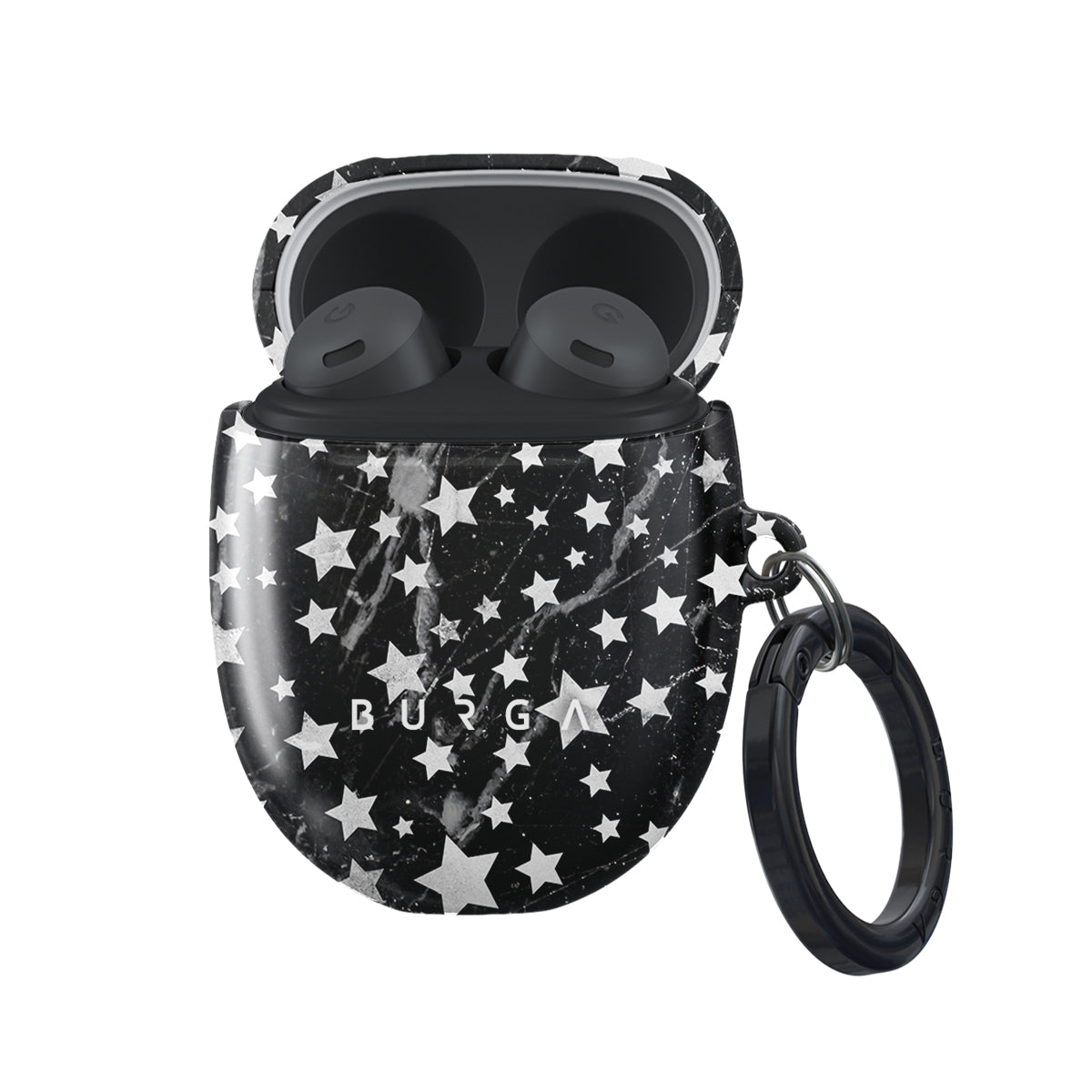 The charming star pattern of our Starry Night Google Pixel Buds Pro case cover meets with a trendy black and white marble. The unique combination creates a design that will transform your Google Pixel Buds Pro case from a plain one to one ready to slay in the fashion world. Our case fits perfectly snug around Google Pixel Buds Pro . “Like a glove!” one might say. And it won’t disrupt the wireless charging capabilities of the newer model. There’s even an LED light indicator to prove it (don’t worry, wired charging still works, too). When fitted, the BURGA case will protect the delicate Google Pixel Buds Pro case beneath it from scratches, bumps, and drops while remaining scratch-free itself. Our signature design pattern prints are High Quality, and will never peel or fade away- thanks to our unique printing technology. And finally, a handy carabiner is there to make your life easier and more convenient: just snap it around your keys or belt loop and tackle the day head-on. Your music is right there by your side when you need it.