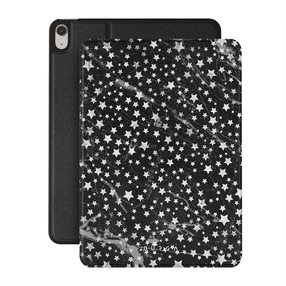 Dark, endless with flickering stars, the Starry Night iPad Air 11 (7th/6th Gen) folio case is inspired by the sky above us. Here the charming star pattern meets with a trendy black and white marble. Add the unique combination to your wardrobe and transform your protective iPad case cover into a fashion accessory.