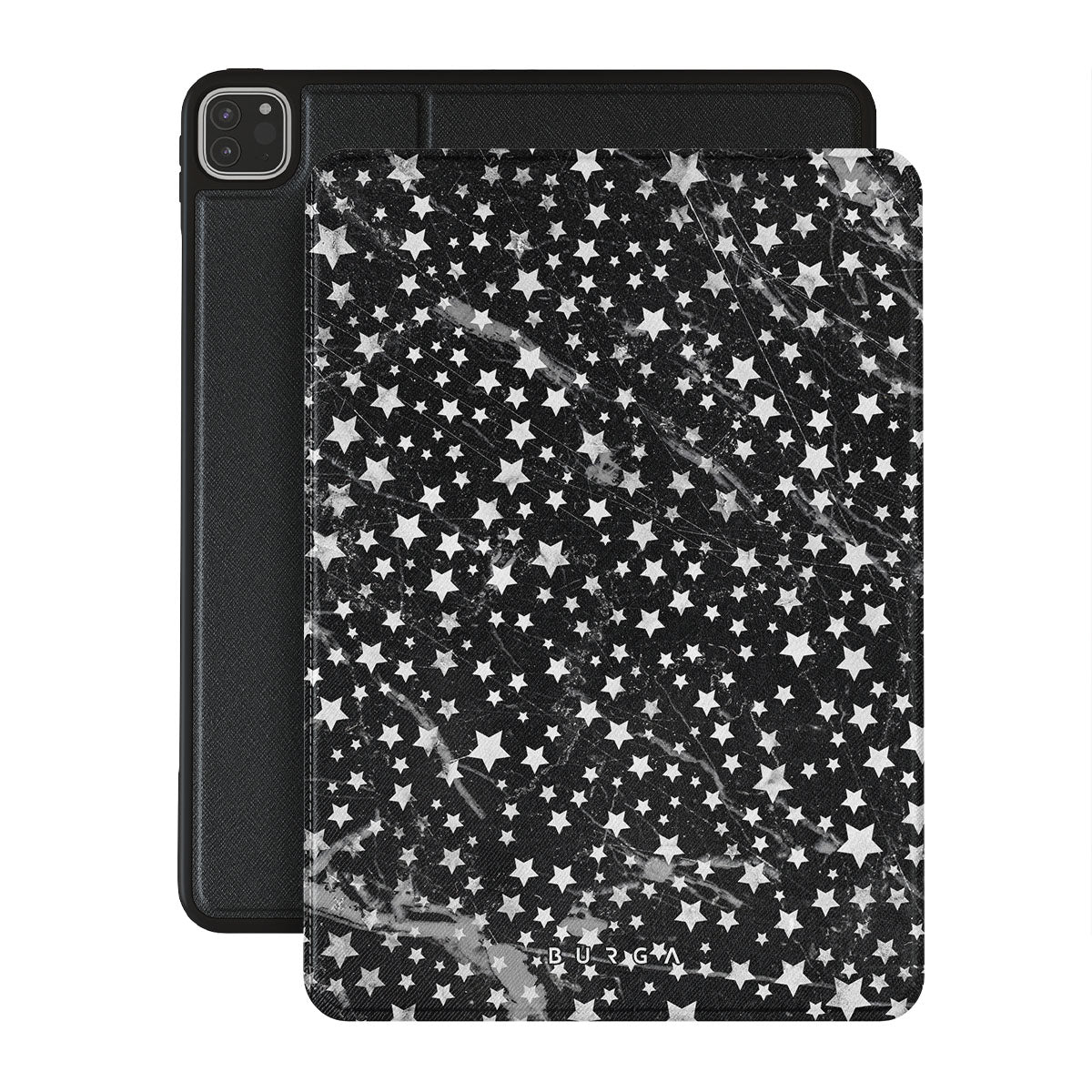 Dark, endless with flickering stars, the Starry Night iPad Pro 12.9 (6th/5th Gen) folio case is inspired by the sky above us. Here the charming star pattern meets with a trendy black and white marble. Add the unique combination to your wardrobe and transform your protective iPad case cover into a fashion accessory.