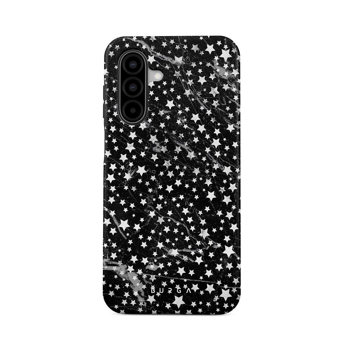 Samsung Galaxy A17 phone case is inspired by the sky above us. Here the charming star pattern meets with a trendy black and white marble. Add the unique combination to your wardrobe and transform your protective phone case into a fashion accessory.