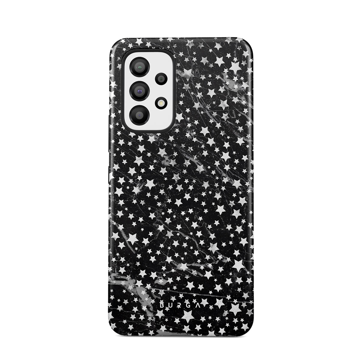 Samsung Galaxy A33 phone case is inspired by the sky above us. Here the charming star pattern meets with a trendy black and white marble. Add the unique combination to your wardrobe and transform your protective phone case into a fashion accessory.