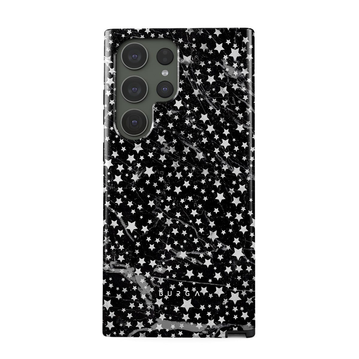 Samsung Galaxy S23 Ultra phone case is inspired by the sky above us. Here the charming star pattern meets with a trendy black and white marble. Add the unique combination to your wardrobe and transform your protective phone case into a fashion accessory.