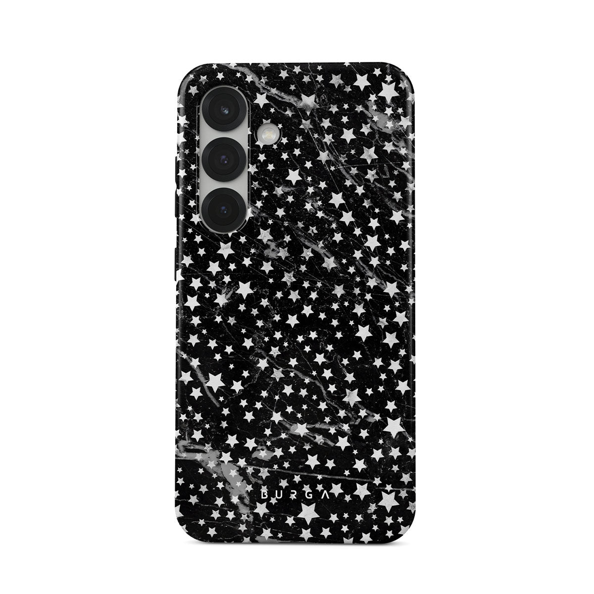 Samsung Galaxy S25 phone case is inspired by the sky above us. Here the charming star pattern meets with a trendy black and white marble. Add the unique combination to your wardrobe and transform your protective phone case into a fashion accessory.