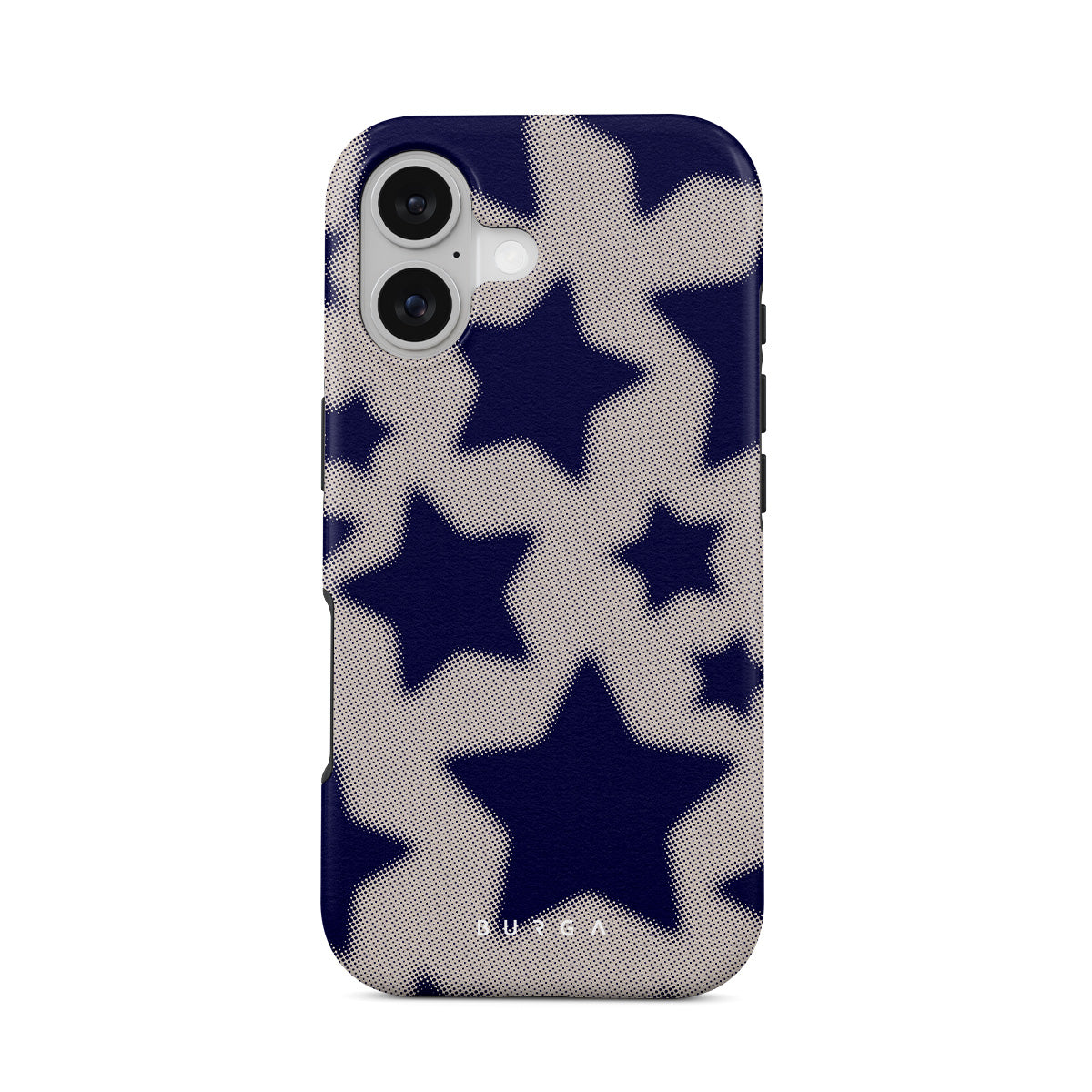 Rock a touch of '90s nostalgia with the Starstruck iPhone 17 phone case design. Its nude background is scattered with bold blue stars; each star hints at stories of hope and youthful dreams, blending simplicity with depth.