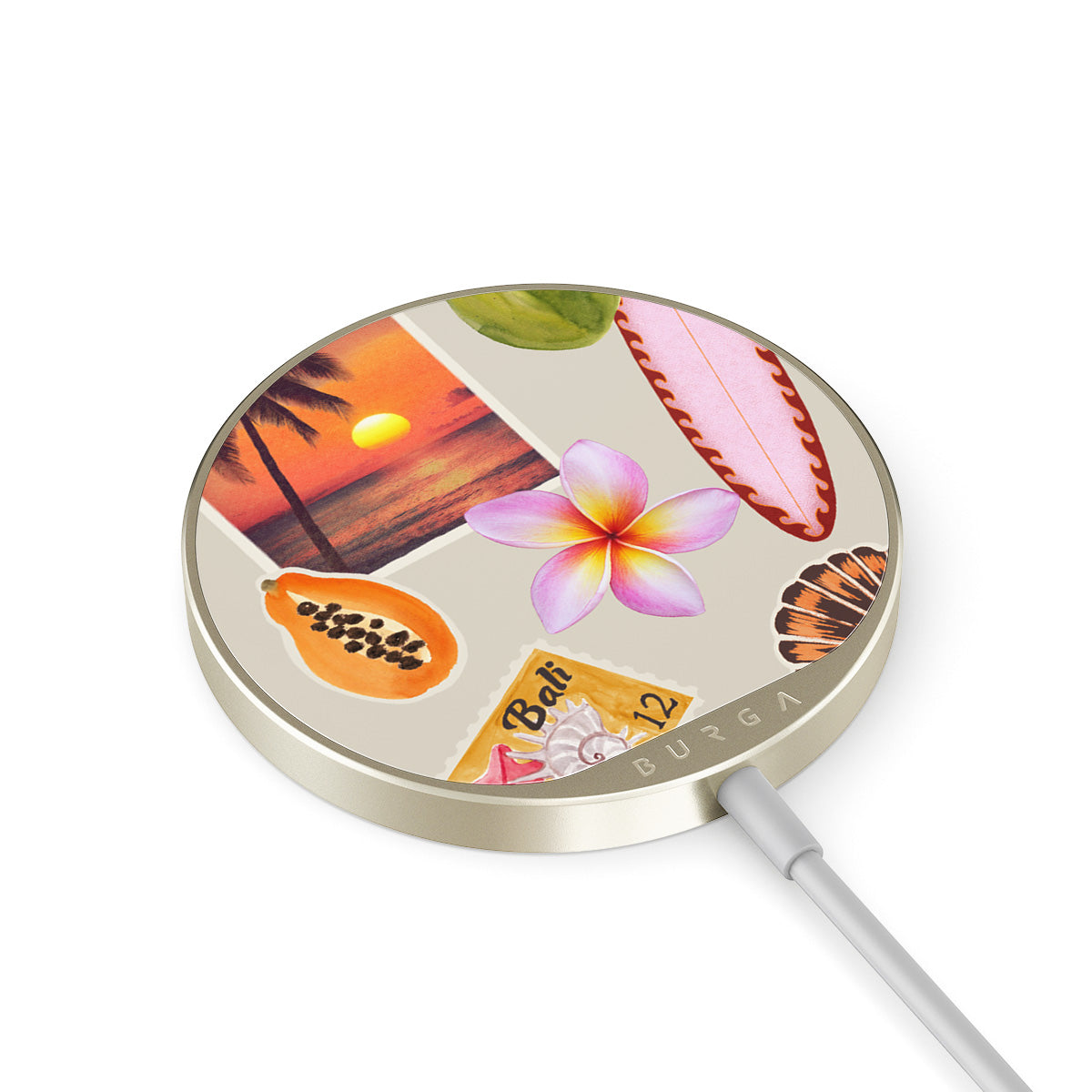 The 1.5m integrated cord makes it easy to charge wherever you are — at the office, chillin’ on the sofa, or killing time at the airport lounge. Plus, the BURGA glass back gives you 500+ prints to choose from, so your charger looks as good as your case.