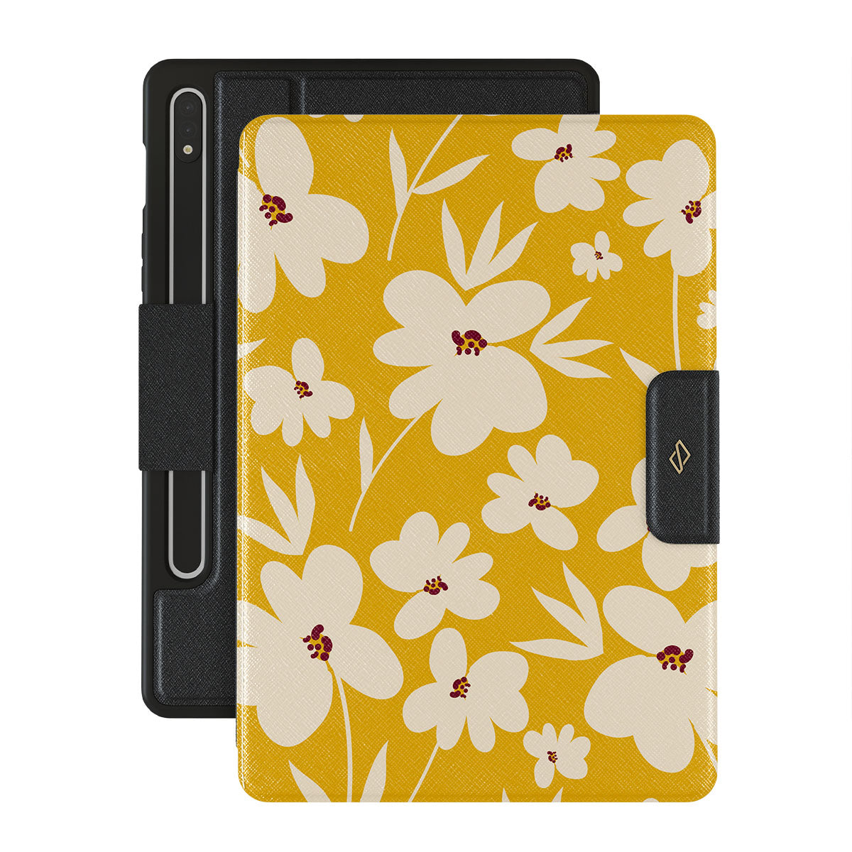 Full of fresh produce, warm rays of sunshine, and relaxing moments, our Sunday Market {Galaxy Tab Model} Samsung Galaxy Tab S9+ folio case encase all of this! The vintage mustard-yellow background with beautiful creme flowers will add that soft floral touch to your wardrobe while protecting your device from unexpected falls!