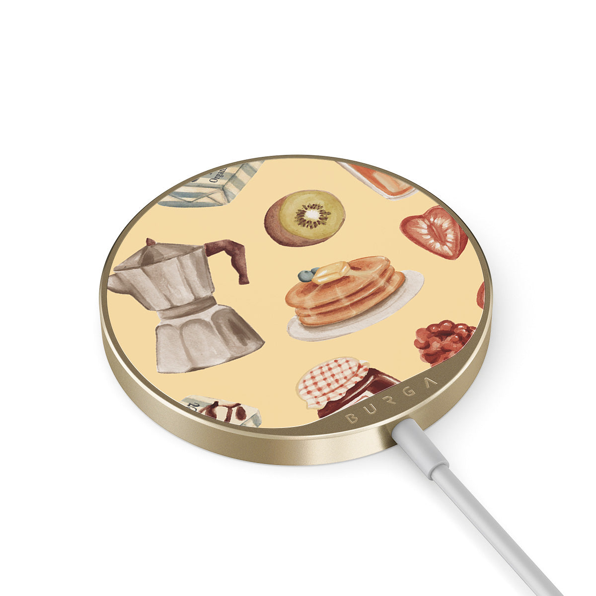 The 1.5m integrated cord makes it easy to charge wherever you are — at the office, chillin’ on the sofa, or killing time at the airport lounge. Plus, the BURGA glass back gives you 500+ prints to choose from, so your charger looks as good as your case.