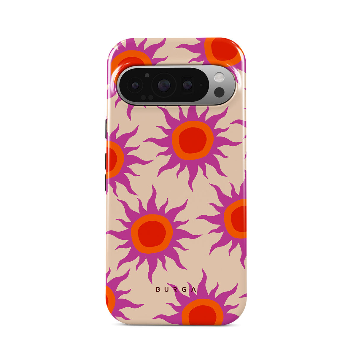 Discover the radiant serenity of the Sunset Glow design, a harmonious blend of soothing pastels and fiery suns. Vivacious viva magenta rays add a playful touch, perfectly balancing tranquility and dynamism. More than just a fashion accessory, this striking Google Pixel 9 Pro XL phone case mirrors your unique personality and zest for life.