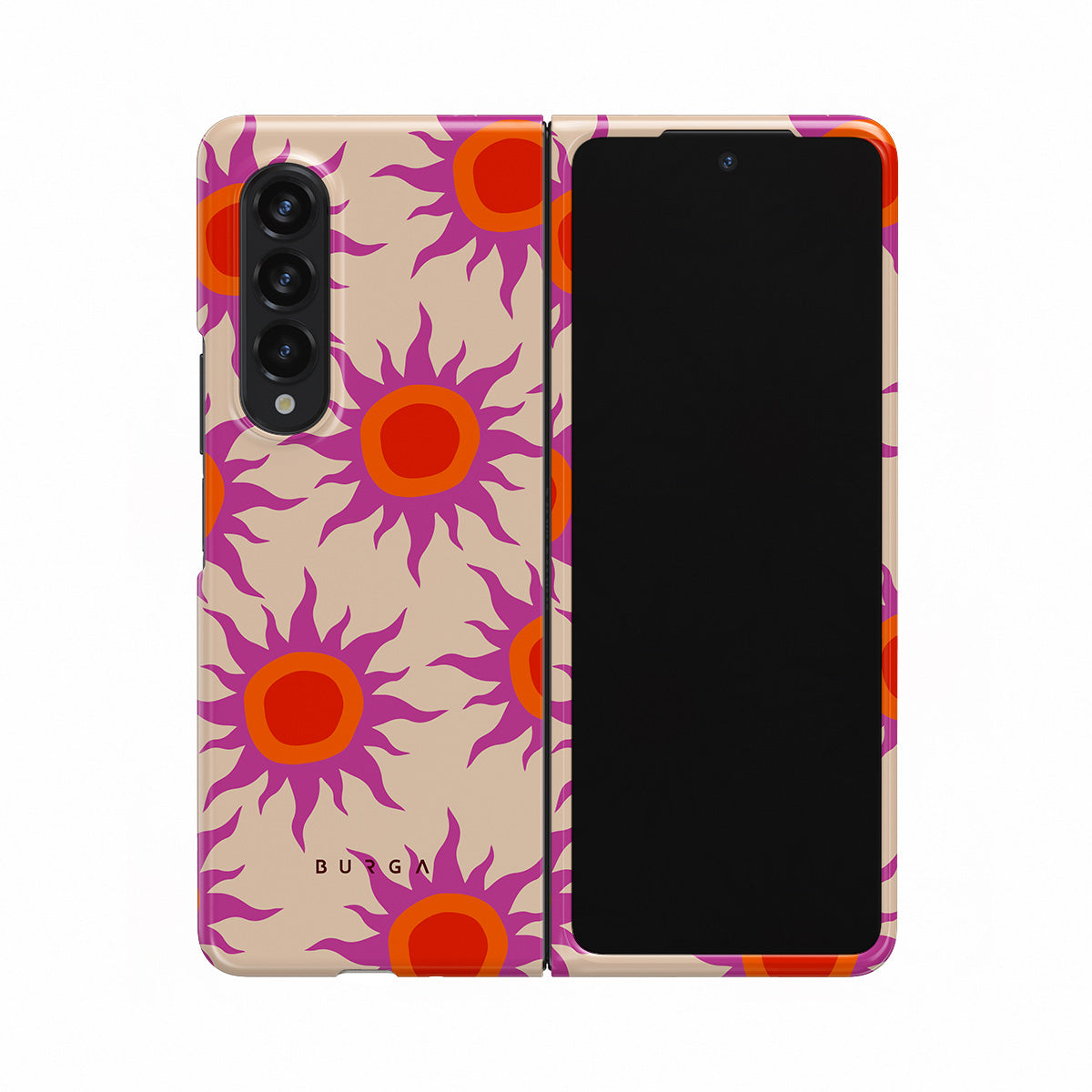Discover the radiant serenity of the Sunset Glow design, a harmonious blend of soothing pastels and fiery suns. Vivacious viva magenta rays add a playful touch, perfectly balancing tranquility and dynamism. More than just a fashion accessory, this striking Samsung Galaxy Z Fold 3 phone case mirrors your unique personality and zest for life.