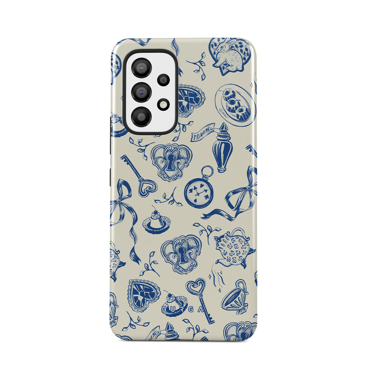 The Tea Party Samsung Galaxy A73 phone case design is a porcelain puzzle—ribbons tangled, time warped, rules rewritten. Sit down, pour a cup, but don’t expect things to make sense. They never do.