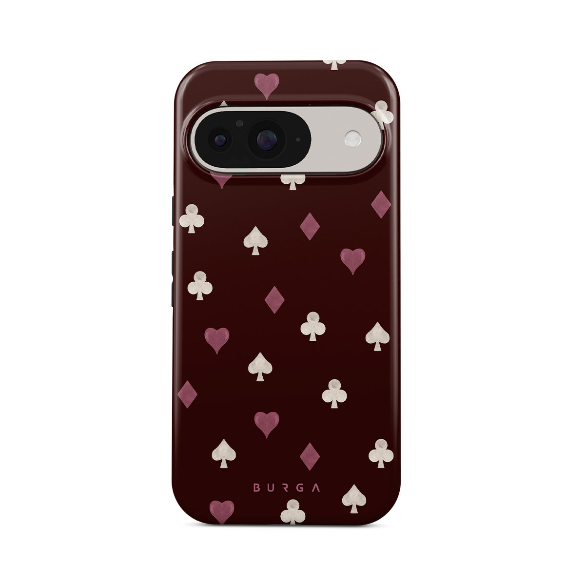 Nothing is as it appears. Hearts, clubs, diamonds, and spades—stacked in your favor or playing against you? This Google Pixel 10 phone case design features a rich burgundy background and minimalist suits that make for a game where the rules are constantly shifting.