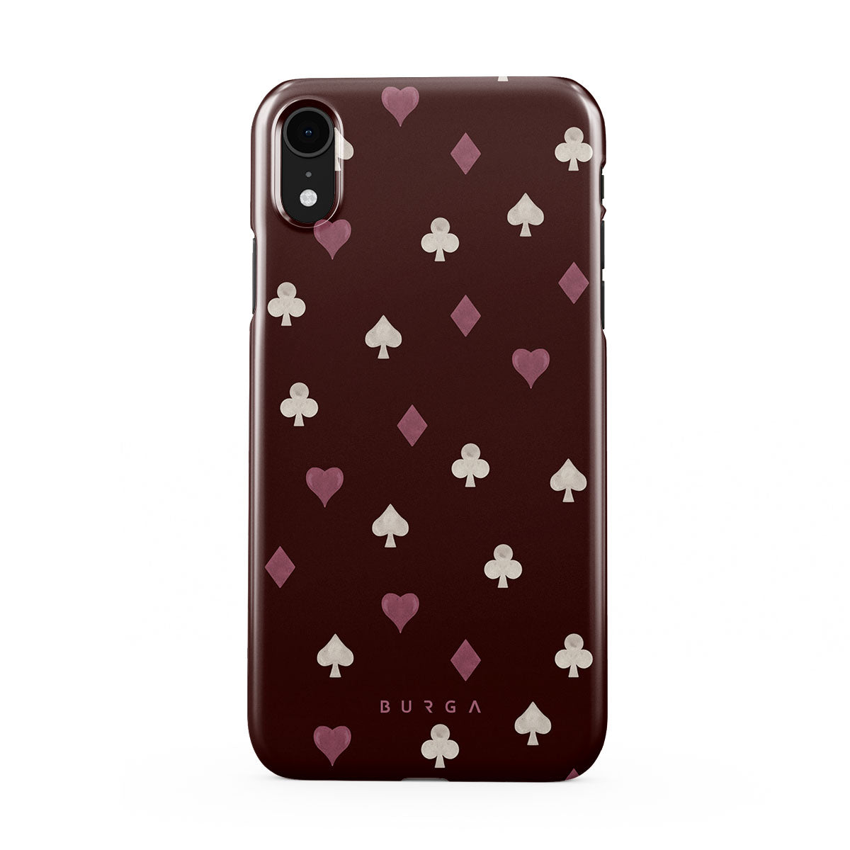 Nothing is as it appears. Hearts, clubs, diamonds, and spades—stacked in your favor or playing against you? This iPhone XR phone case design features a rich burgundy background and minimalist suits that make for a game where the rules are constantly shifting.