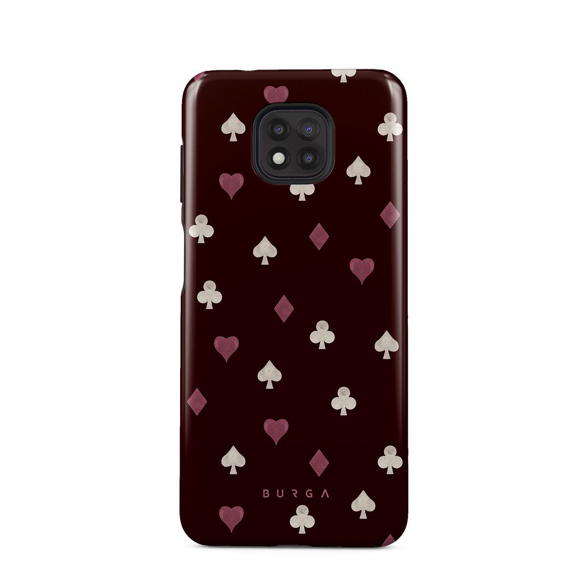 Nothing is as it appears. Hearts, clubs, diamonds, and spades—stacked in your favor or playing against you? This Motorola Moto G Power 2021 phone case design features a rich burgundy background and minimalist suits that make for a game where the rules are constantly shifting.