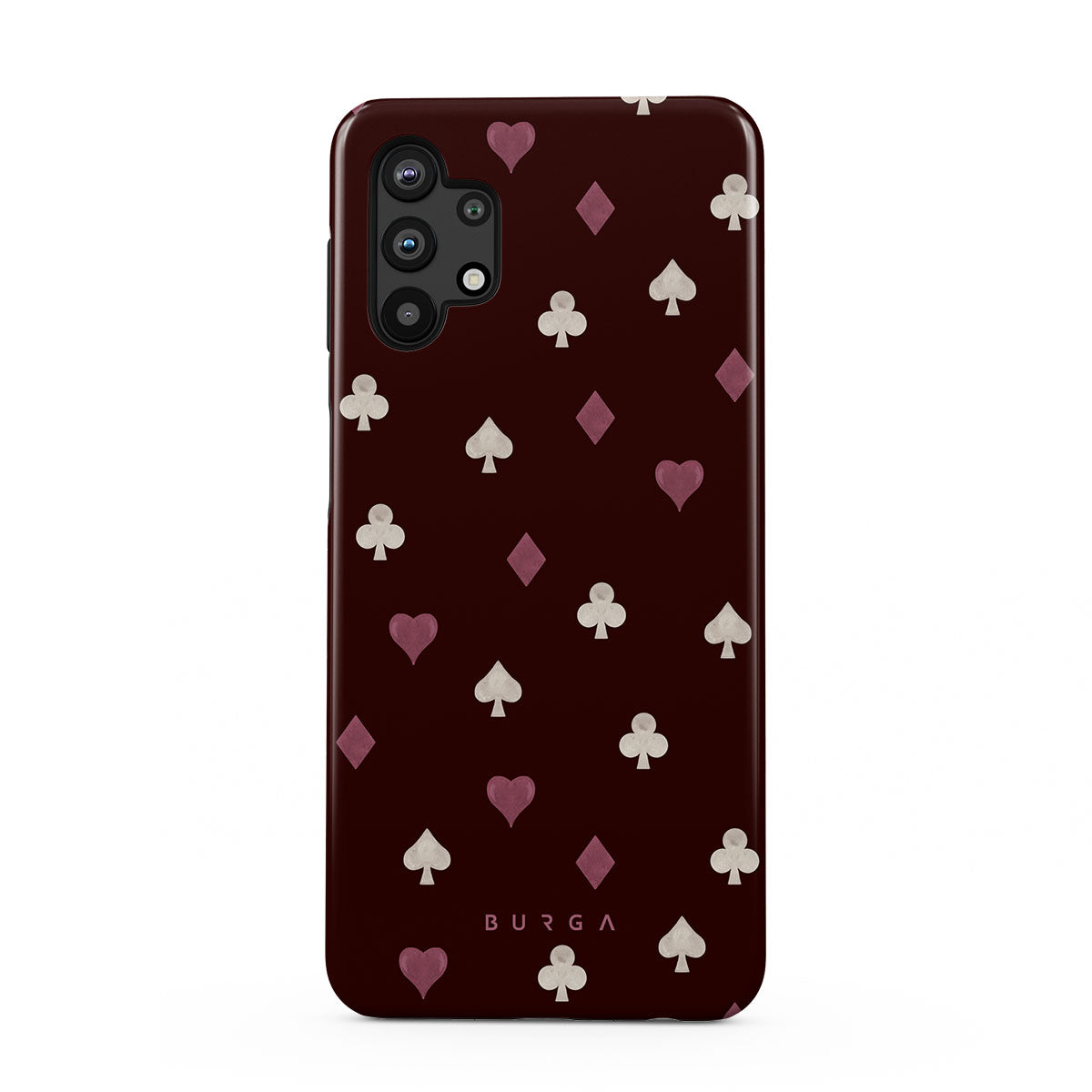 Nothing is as it appears. Hearts, clubs, diamonds, and spades—stacked in your favor or playing against you? This Samsung Galaxy A32 5G phone case design features a rich burgundy background and minimalist suits that make for a game where the rules are constantly shifting.