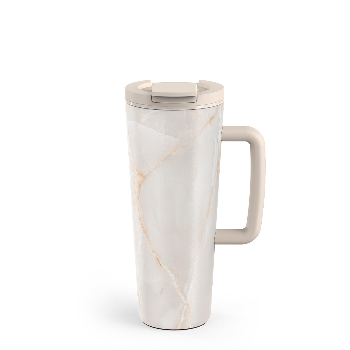 Real-life friendly from every angle. The slim base fits most car cup holders. The large handle feels steady when you’re on the move. The non-slip rubber pad protects your desk and helps prevent knocks.