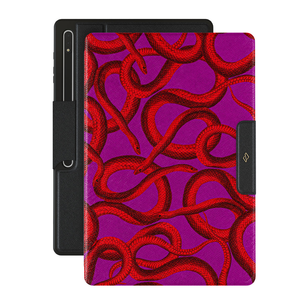 Watch Out Samsung Galaxy Tab S9 Ultra folio case design offers a fierce feel with a bright magenta colored background covered in red snakes pattern. Make a statement while protecting your Galaxy Tab, as this case is guaranteed to catch everyone's eye.