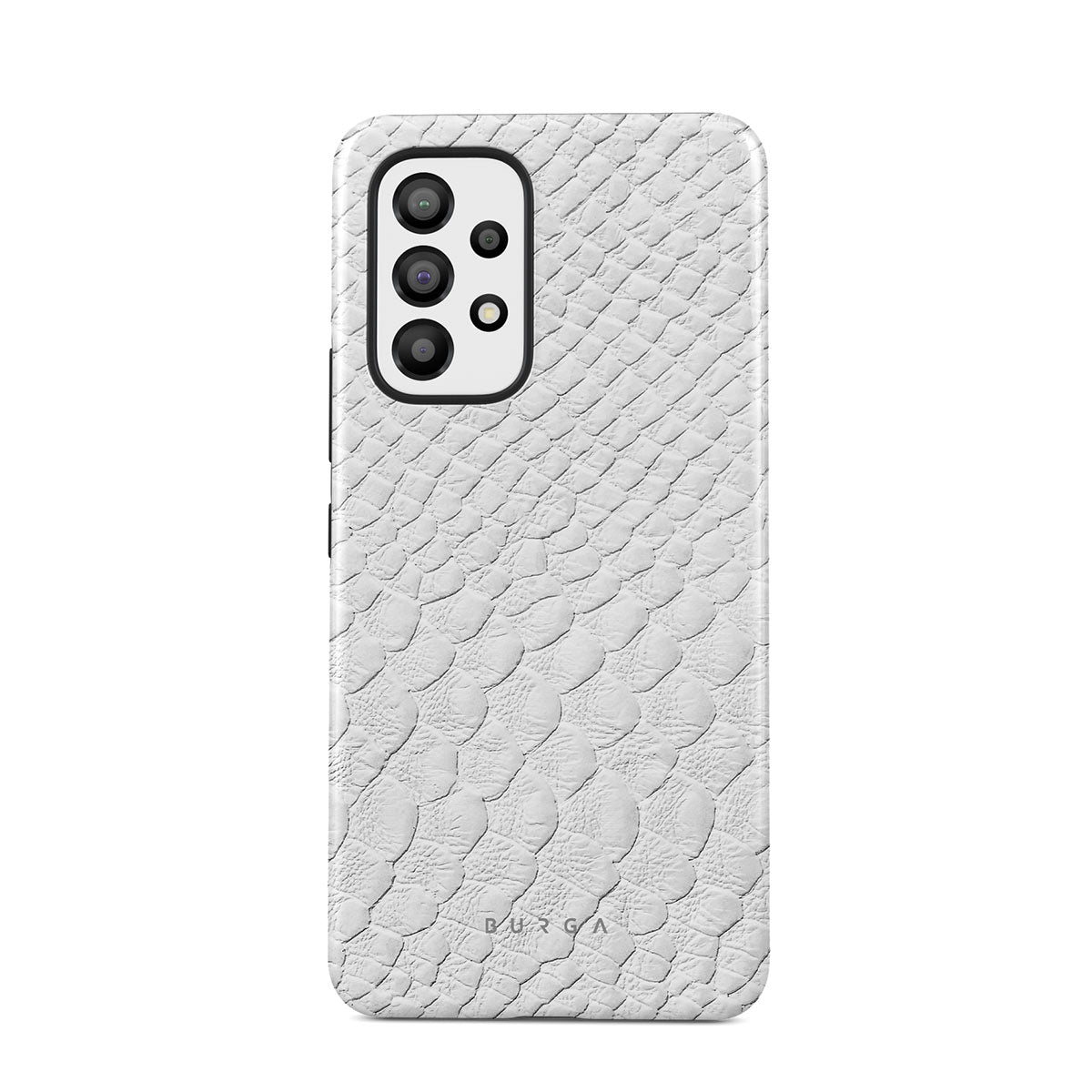 Glacial Desert Samsung Galaxy A33 phone case features snakeskin design in glacial white color. The dangerous animal print will add confidence and a touch of luxury to your style while transforming your phone into a fashion accessory.