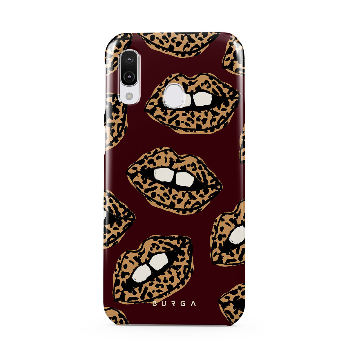 This design features: leopard print, lips, open lips, colored lips